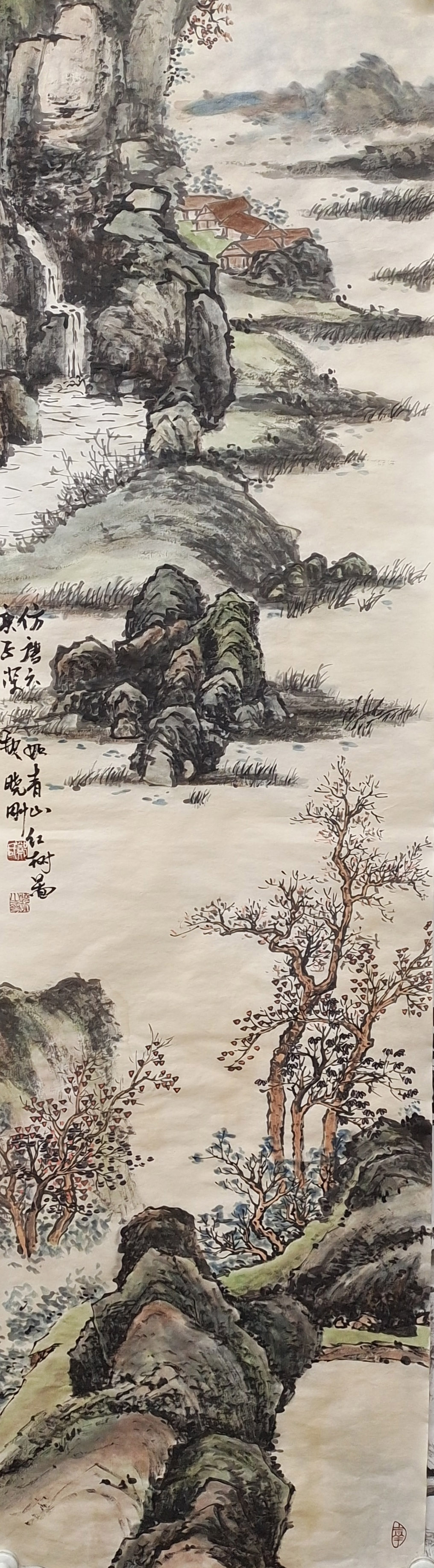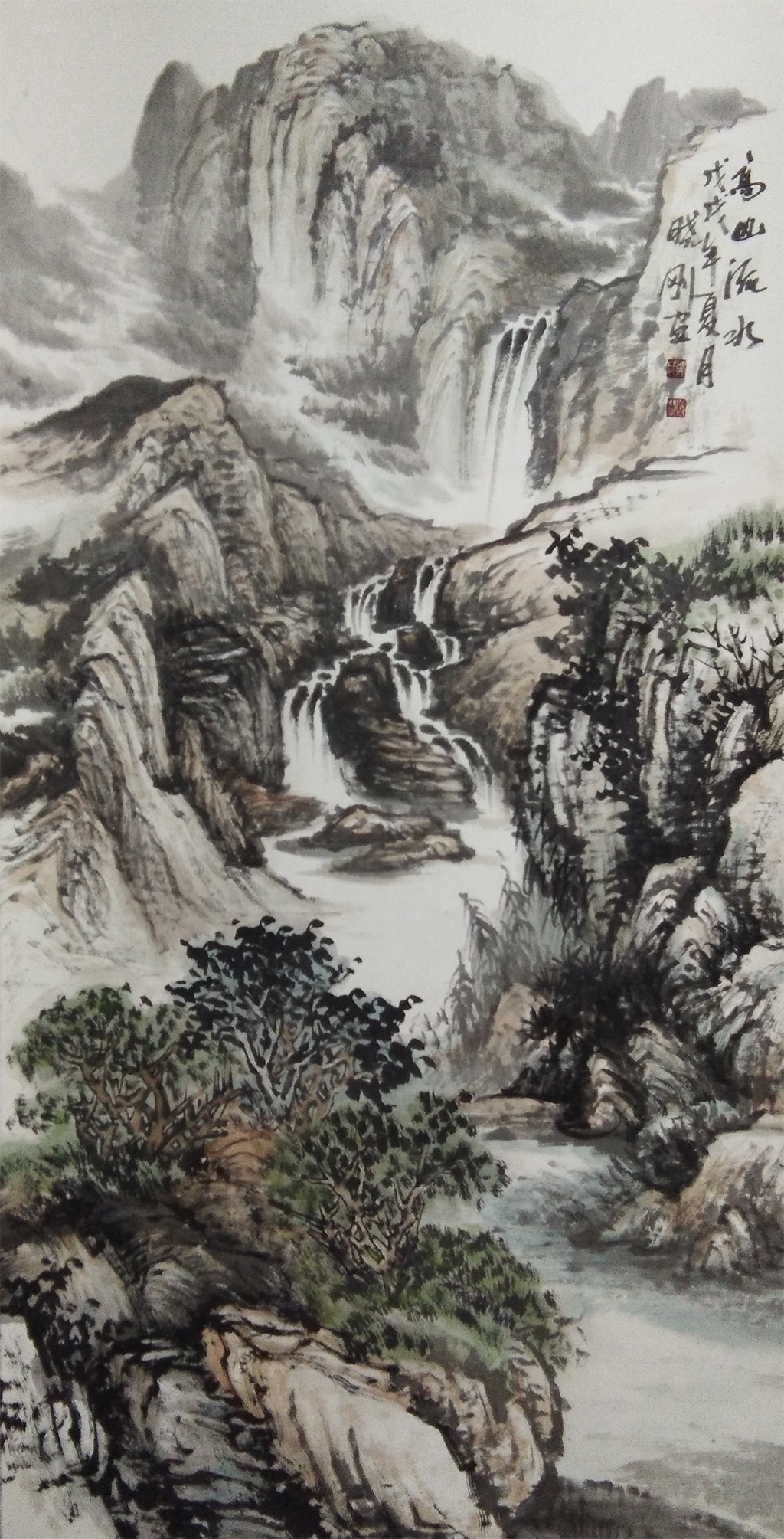 以心感悟自然,用情记录自然。郑晓刚坚持砥砺求实,不懈奋进,尊崇“师法自然”和“笔墨当随时代”的思想理念,长期坚持走进生活中去,以自己独到的视角感悟生活与自然内在浓郁的情感,投入到写生实践和创作中去,并使二者紧密的结合在一起。其创作思想与做人准则高度一致,追求真我的存在方式,以一颗赤子之心对待创作与生活。在艺术学习与创作实践中,逐渐夯实了绘画基本功,培养了娴熟的艺术技巧,在山水画创作和美术史论方面,深入研讨。其绘画立足于传统笔墨的表现功能,又充分展示现代艺术的个性化特色。